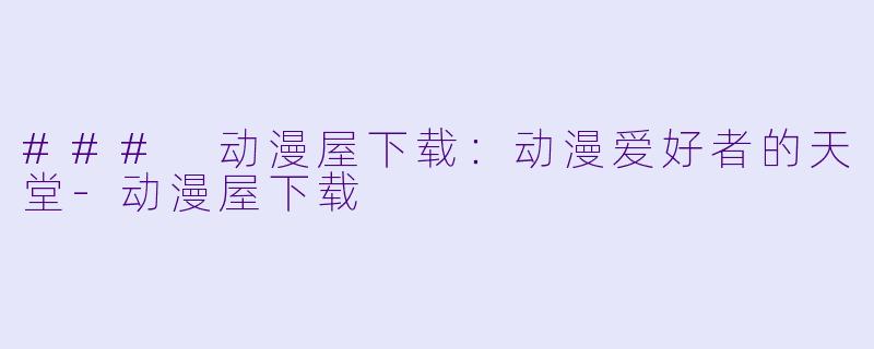 在如今的数字时代,动漫已经成为了全球范围内受欢迎的文化现象。对于许多动漫爱好者来说,寻找一个高质量的下载平台是非常重要的。而“动漫屋下载”正是这样一个备受推崇的网站。