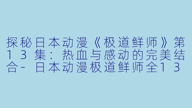 《极道鲜师》是一部备受喜爱的日本动漫,讲述了一个极具个性和反叛精神的年轻老师塞西尔,他被派往一所问题重重的高中,面对的是一群不良学生。在这部作品的第13集中,故事达到了一个高潮,展现了师生之间的深厚情感和成长。