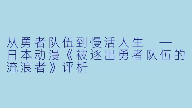 从勇者队伍到慢活人生 — 日本动漫《被逐出勇者队伍的流浪者》评析