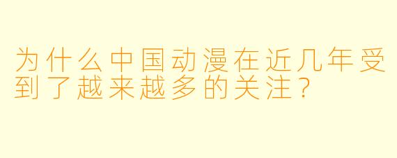 中国动漫在近几年受到越来越多的关注主要是因为其制作质量的提升、故事内容的多样化以及对传统文化的融合,吸引了越来越多的观众。同时,随着互联网的普及和社交媒体的发展,中国动漫也更容易传播,促进了其受欢迎程度。