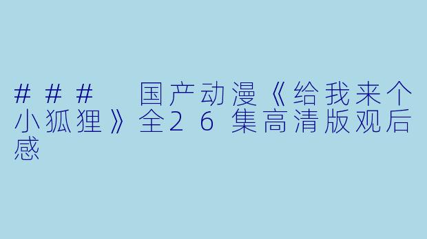 ### 国产动漫《给我来个小狐狸》全26集高清版观后感
