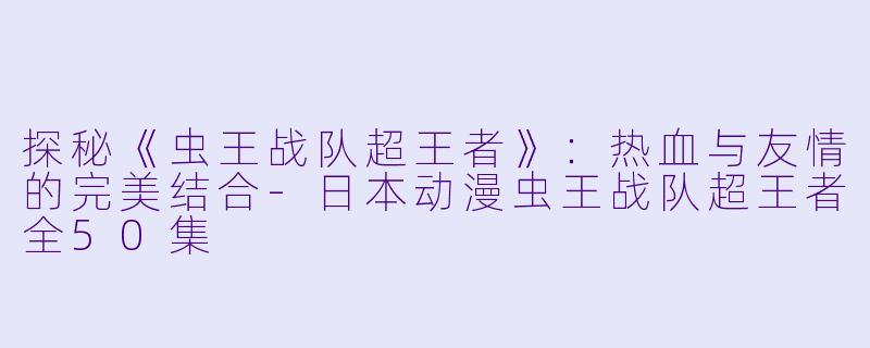 《虫王战队超王者》是日本知名的动漫作品,讲述了一支由年轻人组成的虫王战队,为了保护世界而与各种虫类怪物展开激烈战斗的故事。这部动漫共计50集,情节紧凑,画风精美,深受观众喜爱。
